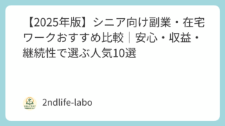 【2025年版】シニア向け副業・在宅ワークおすすめ比較|安心・収益・継続性で選ぶ人気10選年金だけでは不安、でも体力的に外で働くのは難しい——そんなシニア世代に人気なのが「副業・在宅ワーク」。この記事では、2025年最新版のシニア向け副業・...