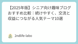 【2025年版】シニア向け趣味ブログおすすめ比較|続けやすく、交流と収益につながる人気テーマ10選「趣味をもっと楽しみたい」「誰かと共有したい」「少しでも収益につながれば嬉しい」——そんなシニア世代に人気なのが趣味ブログ。この記事では、20...