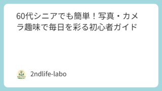 60代 60代シニアでも簡単!写真・カメラ趣味で毎日を彩る初心者ガイド 60代シニアでも簡単!写真・カメラ趣味で毎日を彩る初心者ガイド定年後、「新しい趣味で毎日を楽しく過ごしたい」と考えるシニアの方は多いでしょう。写真やカメラは、ただ風景を記録するだけでなく、日常の小さな発見や感動を形にできる趣味です。また、趣... 2025.09.07 60代セカンドライフ趣味
