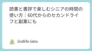 60代 読書と書評で楽しむシニアの時間の使い方|60代からのセカンドライフと副業にも 読書と書評で楽しむシニアの時間の使い方|60代からのセカンドライフと副業にも60代を迎えると「これからの時間をどう過ごそうか」と考える方が増えてきます。体力や環境の変化に合わせ、無理なく楽しめる趣味や副業を探している方も多いでしょう。そんな... 2025.09.08 60代セカンドライフ趣味