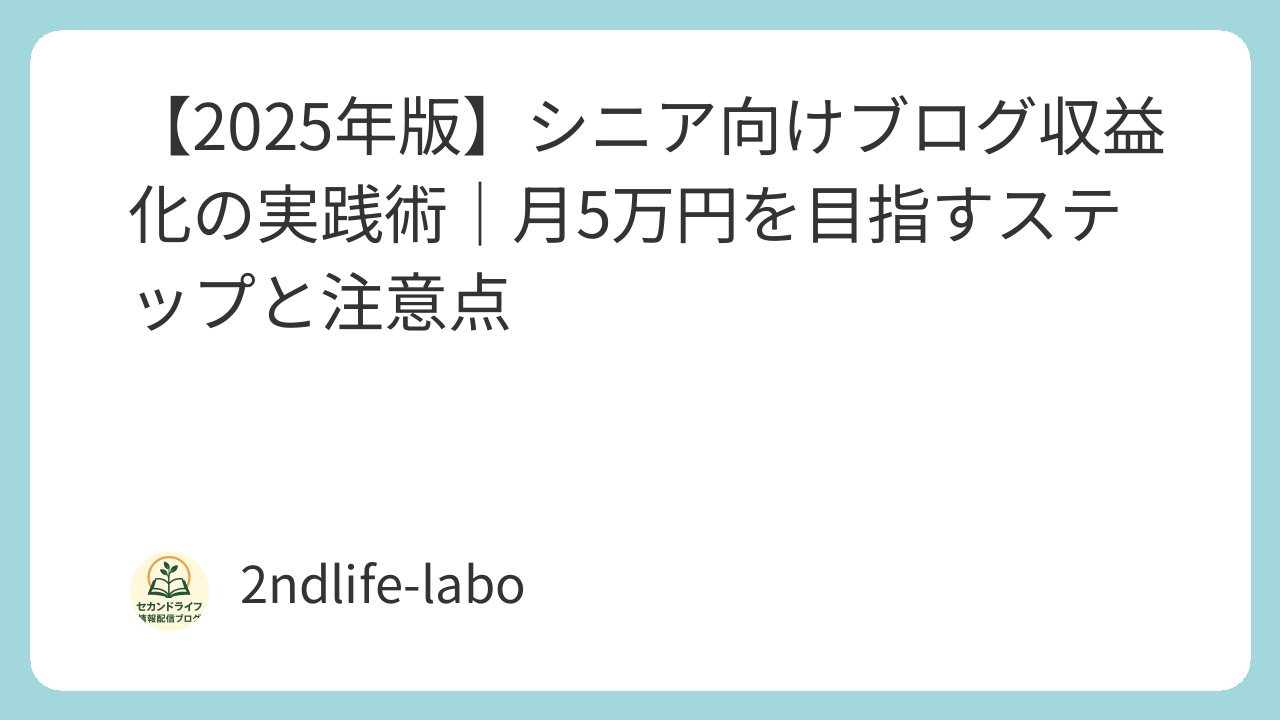 「ブログで収入を得たい」「年金+αの副収入がほしい」——そんなシニア世代に向けて、2025年最新版のブログ収益化ステップをわかりやすく解説します。テーマ選びからWordPress導入、広告収入・アフィリエイト・note販売まで、無理なく始められる方法を紹介します。