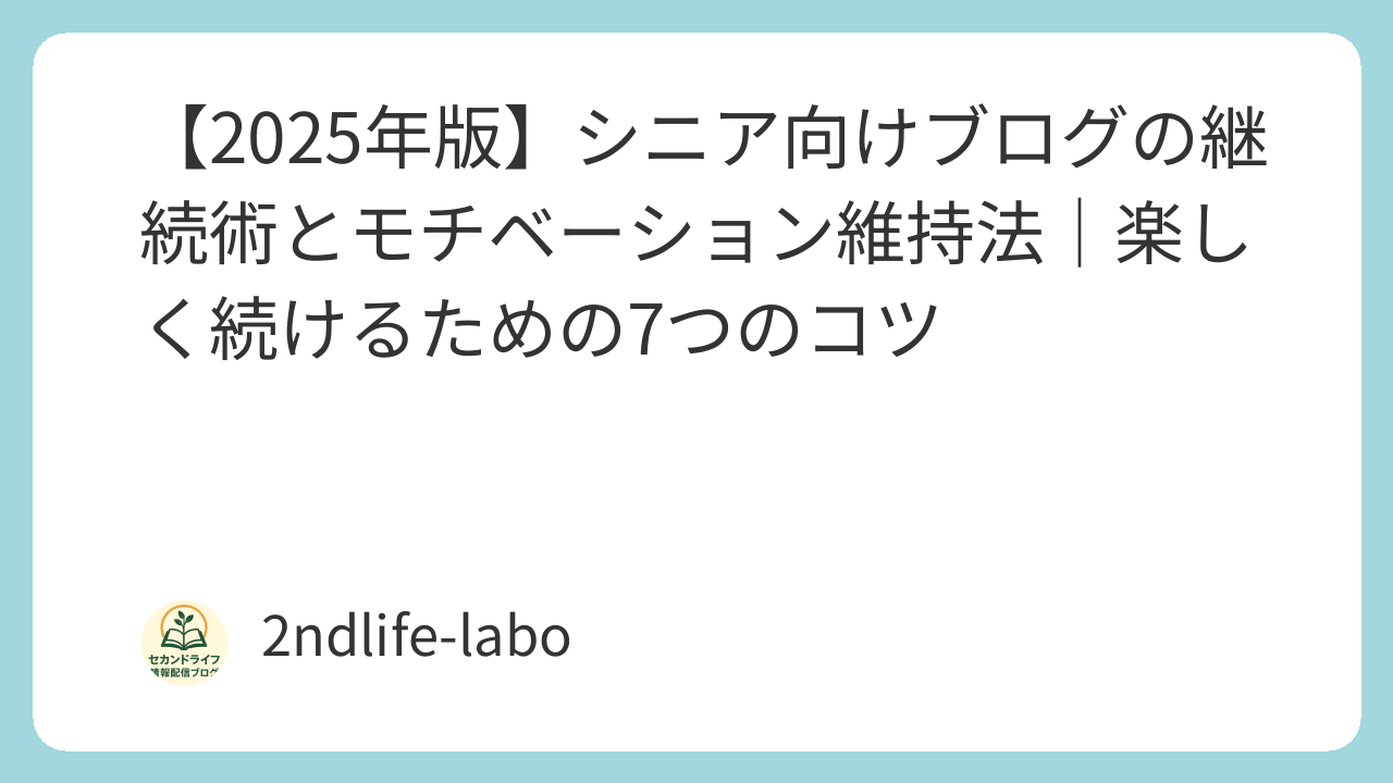 「ブログを始めたけど続かない」「何を書けばいいかわからない」——そんな悩みを抱えるシニア世代に向けて、2025年最新版のブログ継続術とモチベーション維持法を紹介します。無理なく、楽しく、長く続けるための7つのコツを実例とともに解説します。