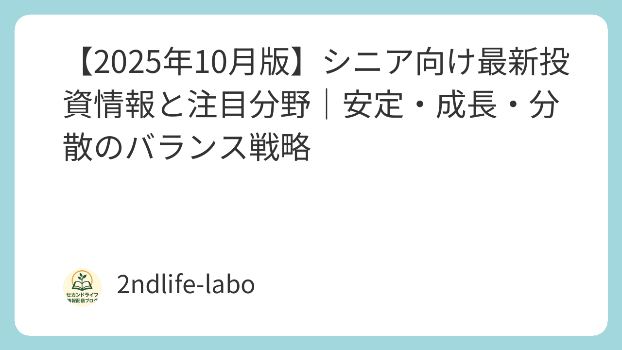【2025年10月版】シニア向け最新投資情報と注目分野|安定・成長・分散のバランス戦略