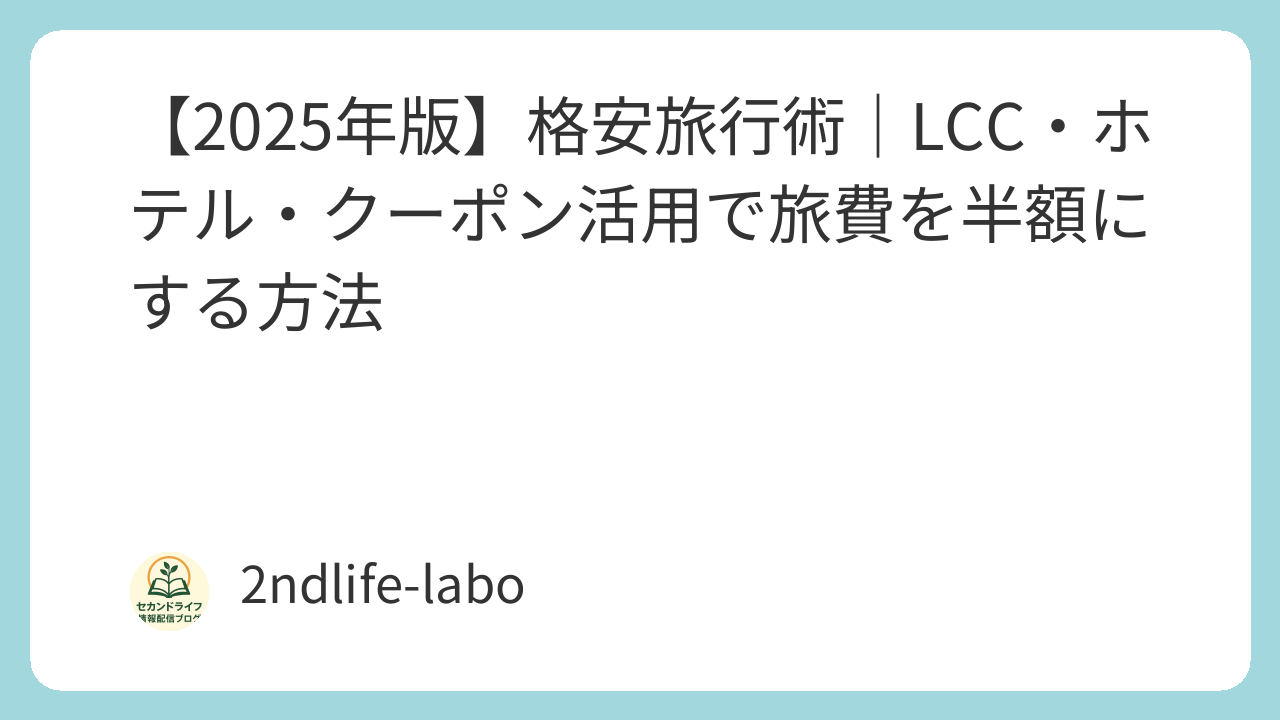【2025年版】格安旅行術|LCC・ホテル・クーポン活用で旅費を半額にする方法