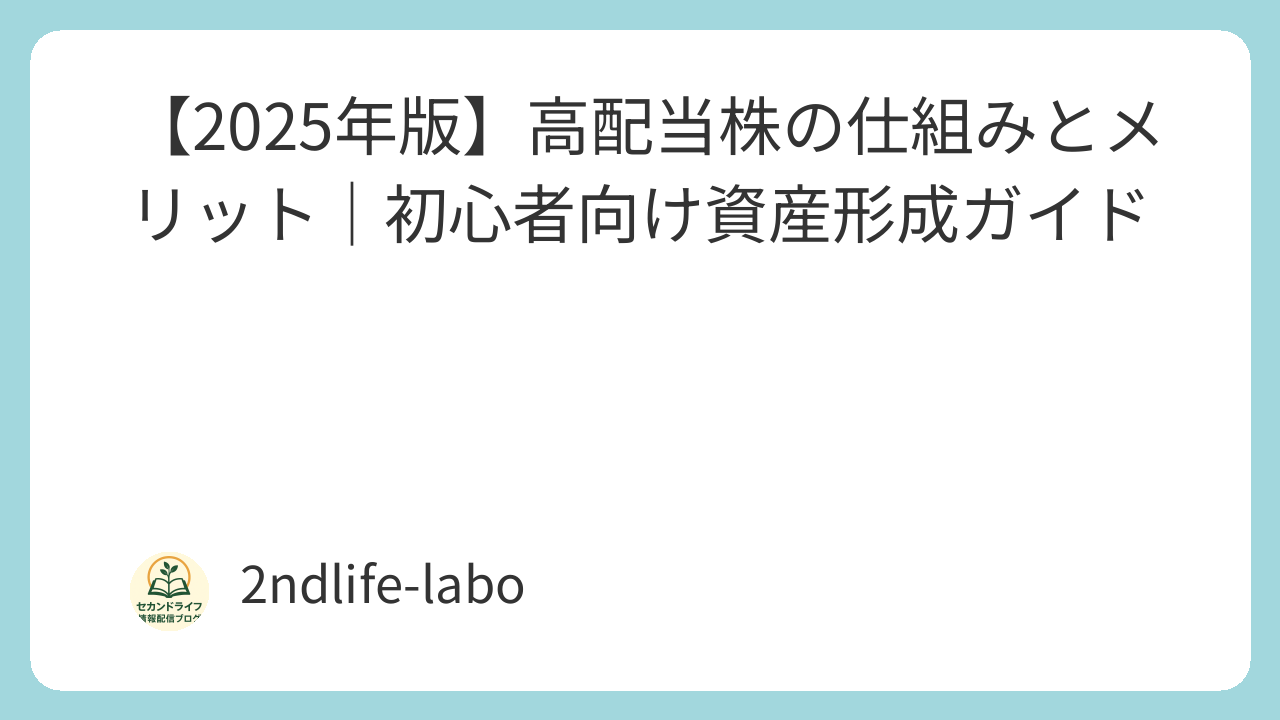 【2025年版】高配当株の仕組みとメリット|初心者向け資産形成ガイド