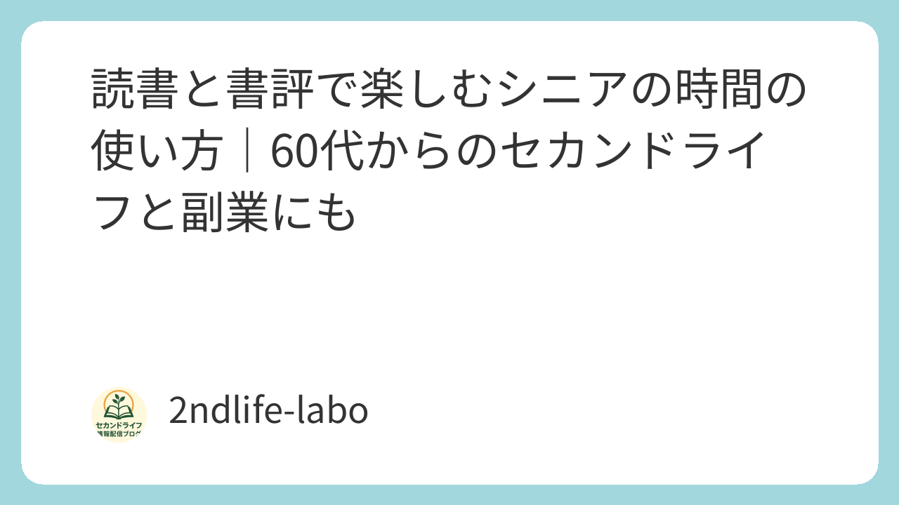 あなたのセカンドライフが、読書とともにさらに豊かになりますように。応援しています!