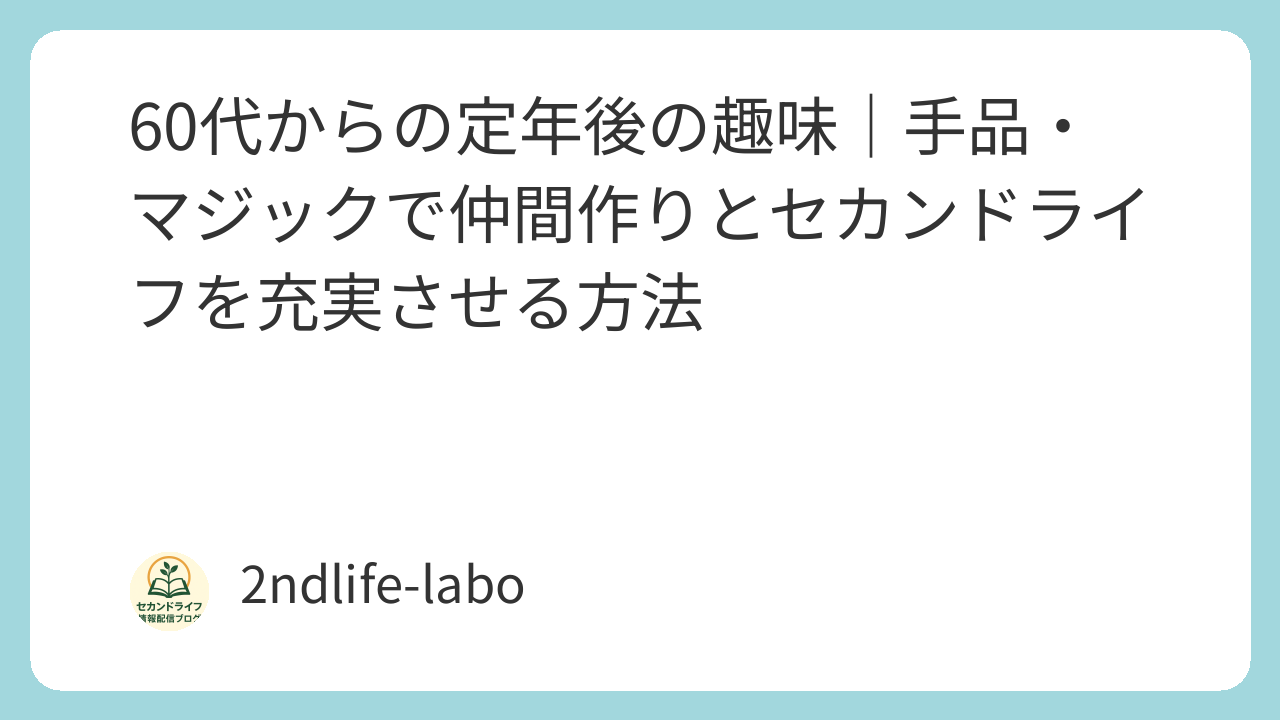 60代からの定年後の趣味|手品・マジックで仲間作りとセカンドライフを充実させる方法
