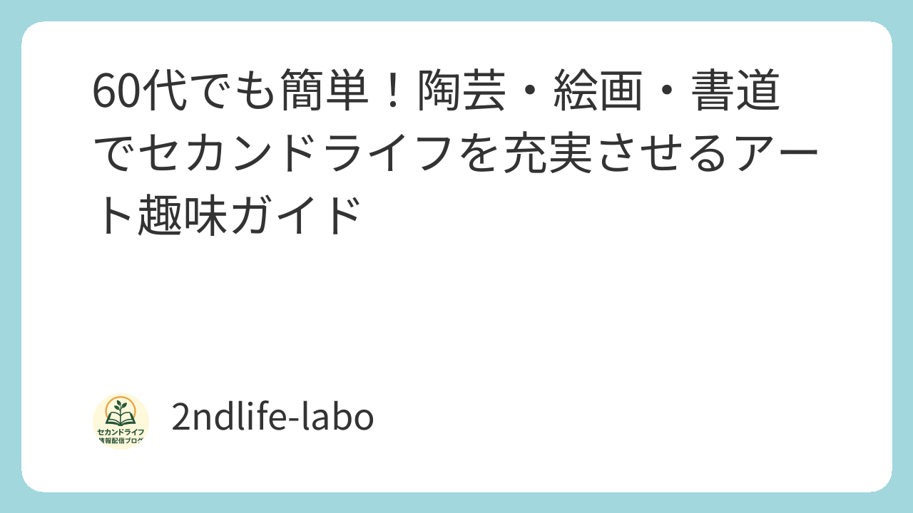 「セカンドライフをもっと充実させたい」「趣味で表現力を磨きたい」「自分にもできるか不安」――そんな60代のあなたへ。 この記事では、シニアでも簡単に始められる陶芸・絵画・書道などのアート趣味を通じて、表現力を高める方法をわかりやすく解説します。 初心者向けステップ、成功・失敗体験、ランキング表や図解も豊富に掲載しているので、今すぐ始めたくなる内容です。